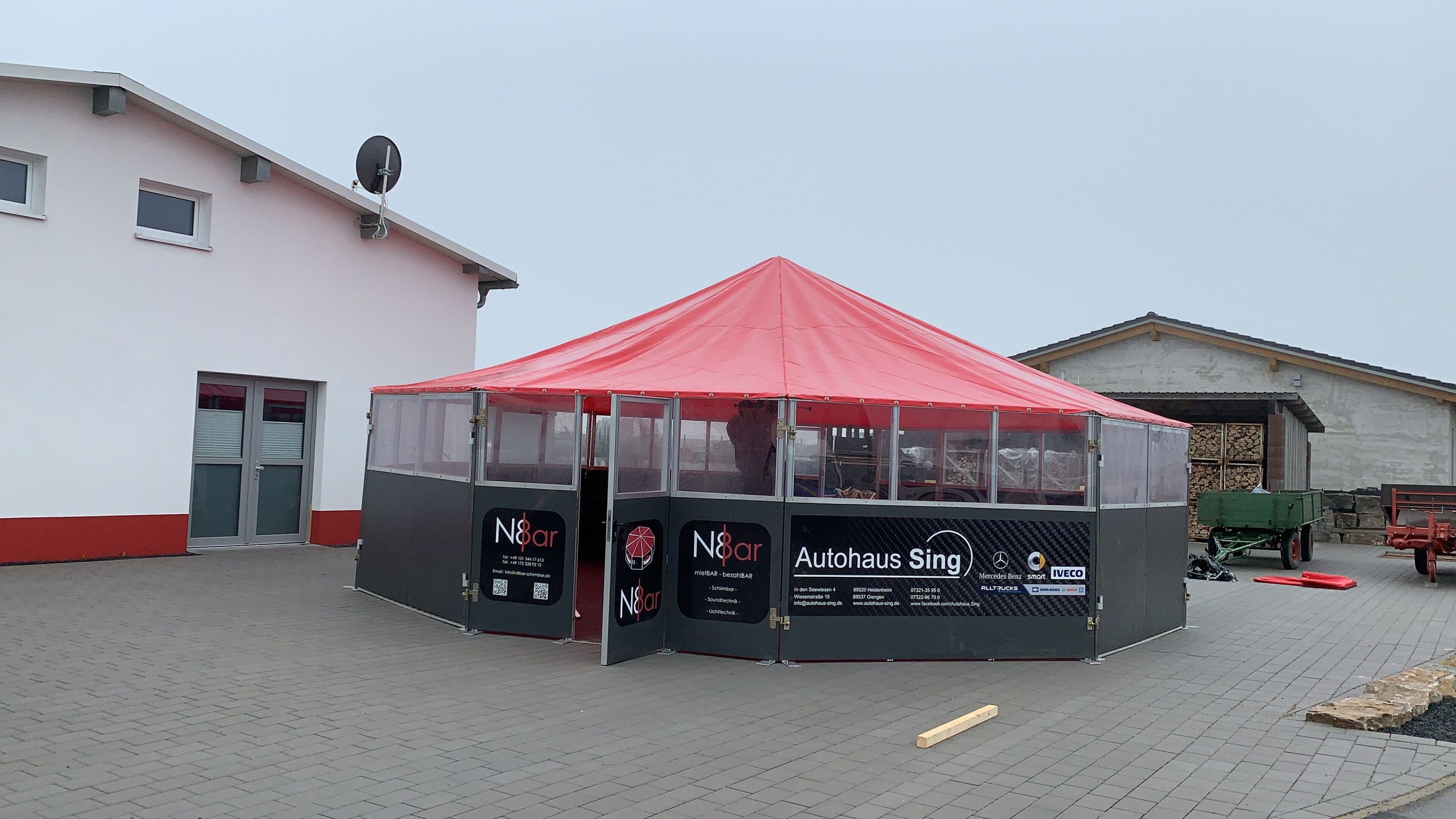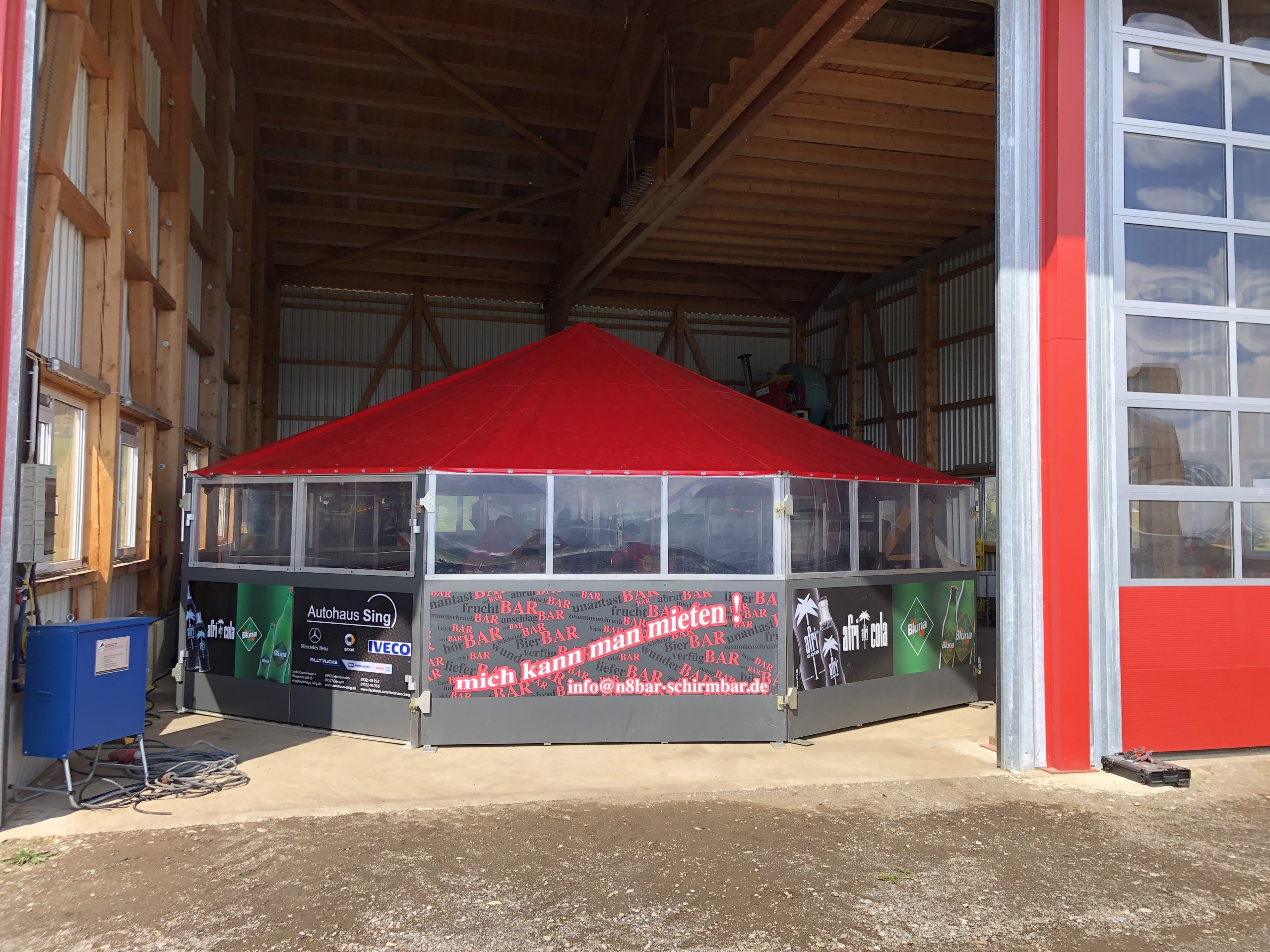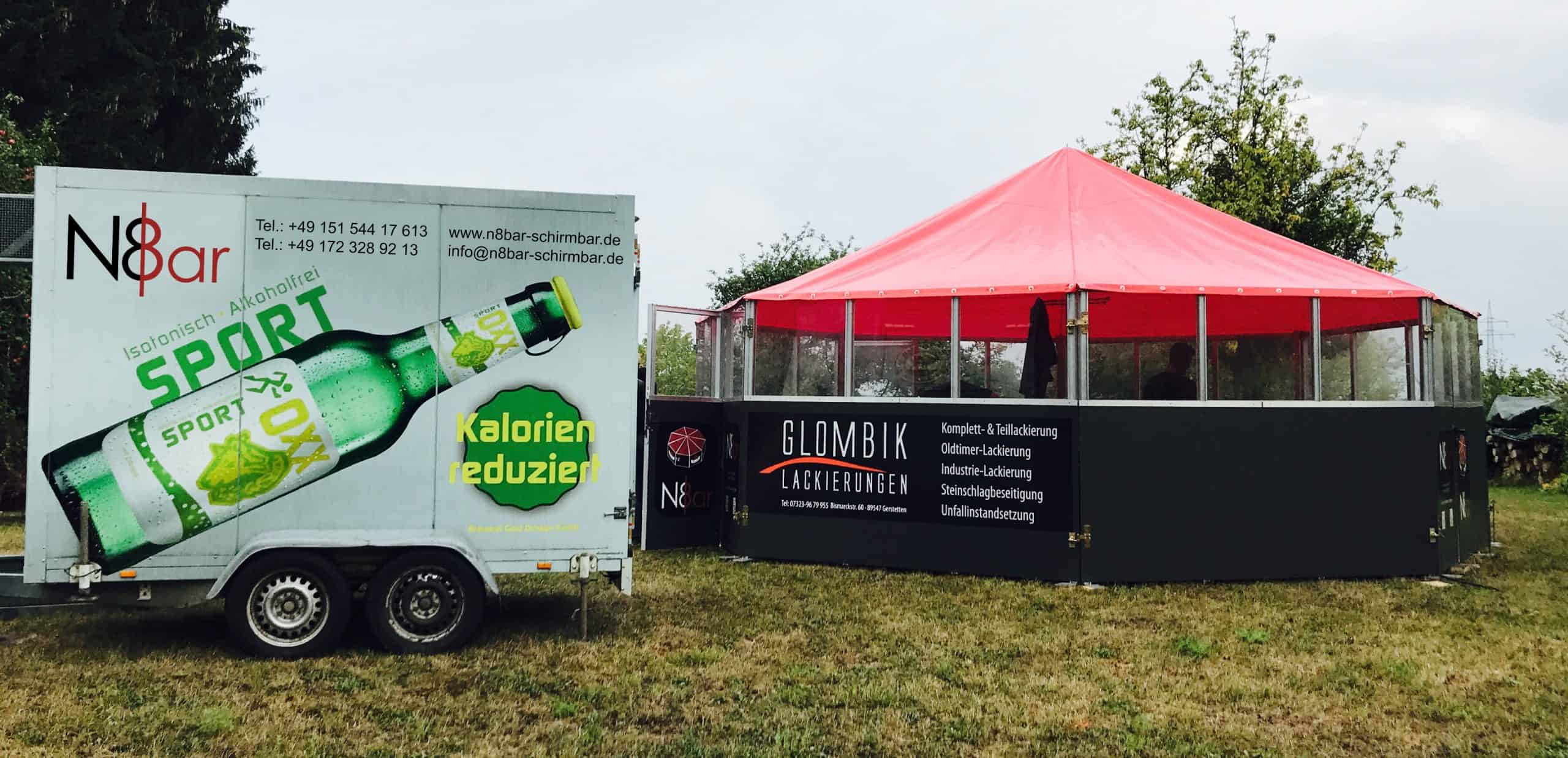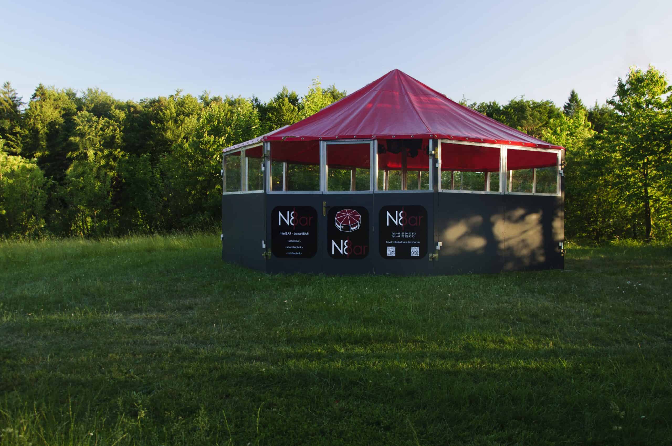 Der vollständige Auf- und Abbau der N8Bar Schirmbar wird von uns übernommen und ist natürlich im Preis inbegriffen. Der Untergrund sollte weitestgehend eben sein, kleinere Unebenheiten oder Gefälle können wir ausgleichen. Ihr stellt uns den Stromanschluss zur Verfügung und nach ca. 1,5h bekommt Ihr die Schirmbar „schlüsselfertig“ übergeben.